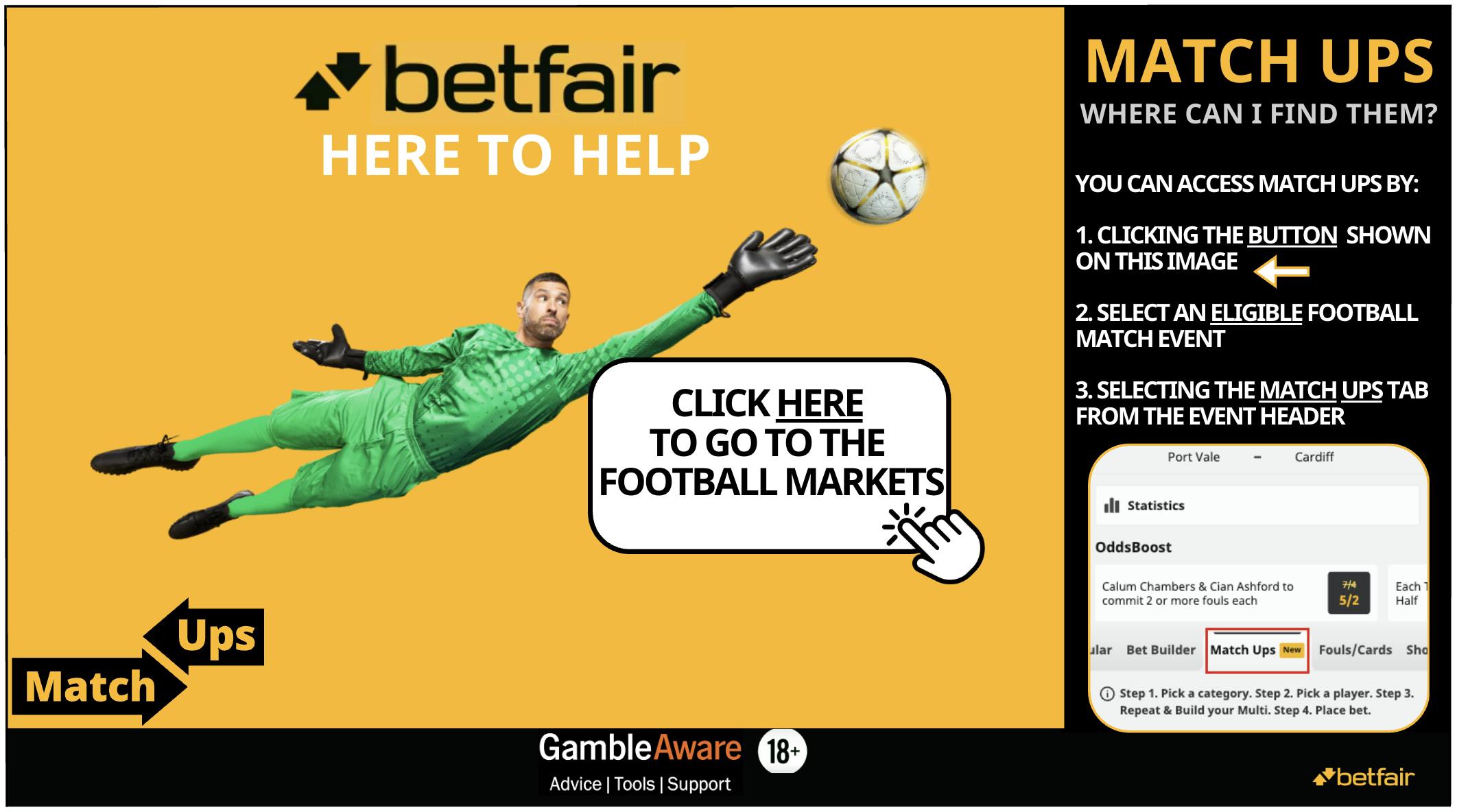 Please note: Match Ups selections can only be combined with other match ups selections from within the same event, and not with Bet Builders or Accas.